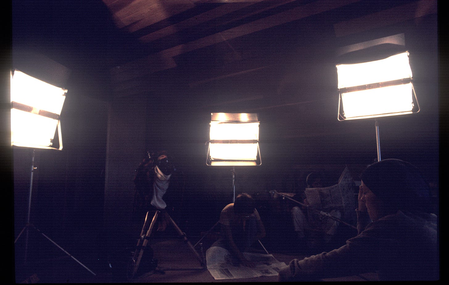 Actor “Z,” (right) prepares for final scene, A MAN,A WOMAN, AND A KILLER (Mendocino, CA shoot, July, 1973).